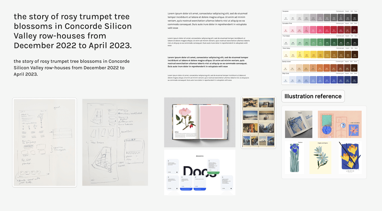 This interactive photo-journal is an archive that preserves these encounters in a digital space. Photographed over 5 months, the project brings together images of the trees in bloom alongside contextual information on their species, location, and cycles of flowering. Visitors are invited to navigate through a map where each tree is identified and marked for bloom levels.
