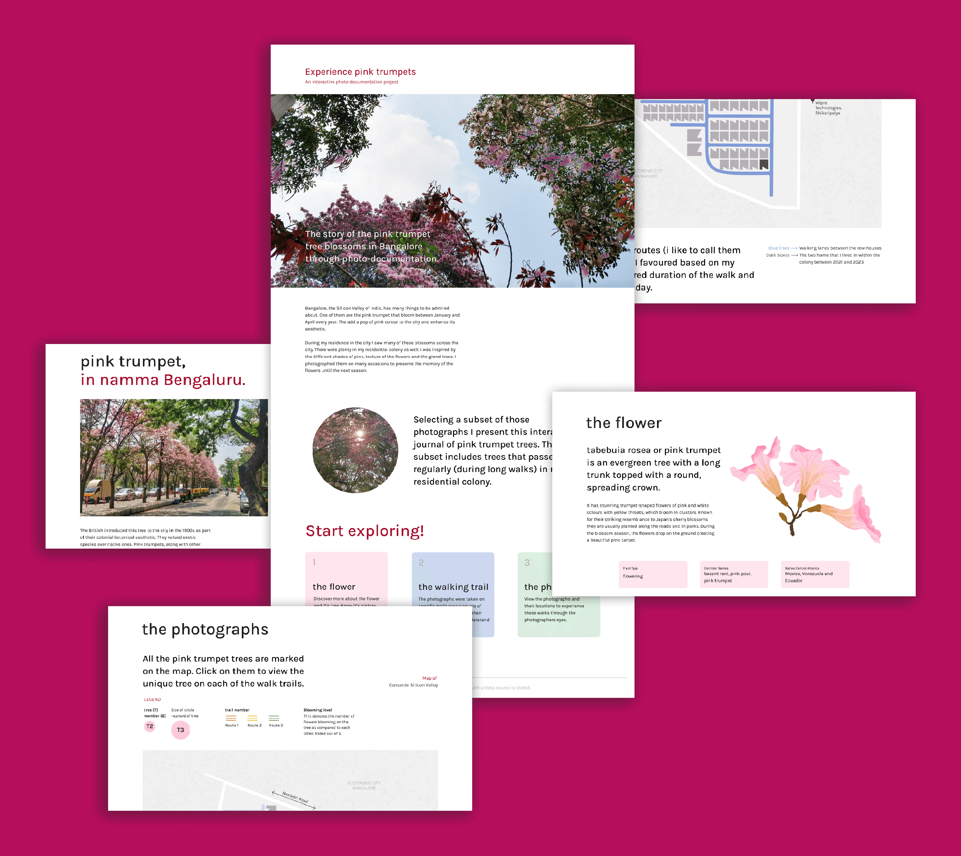 Every year, the bloom of the pink trumpet tree transforms the colour and texture of Bengaluru’s streets. Petals carpeting the ground, clusters swaying overhead, the bursts of pink amidst green treetops—these moments were highlights of my long walks in Bangalore. As I shuttled between cities, memories of the blooms sparked an idea to document them and open the experience to new people.