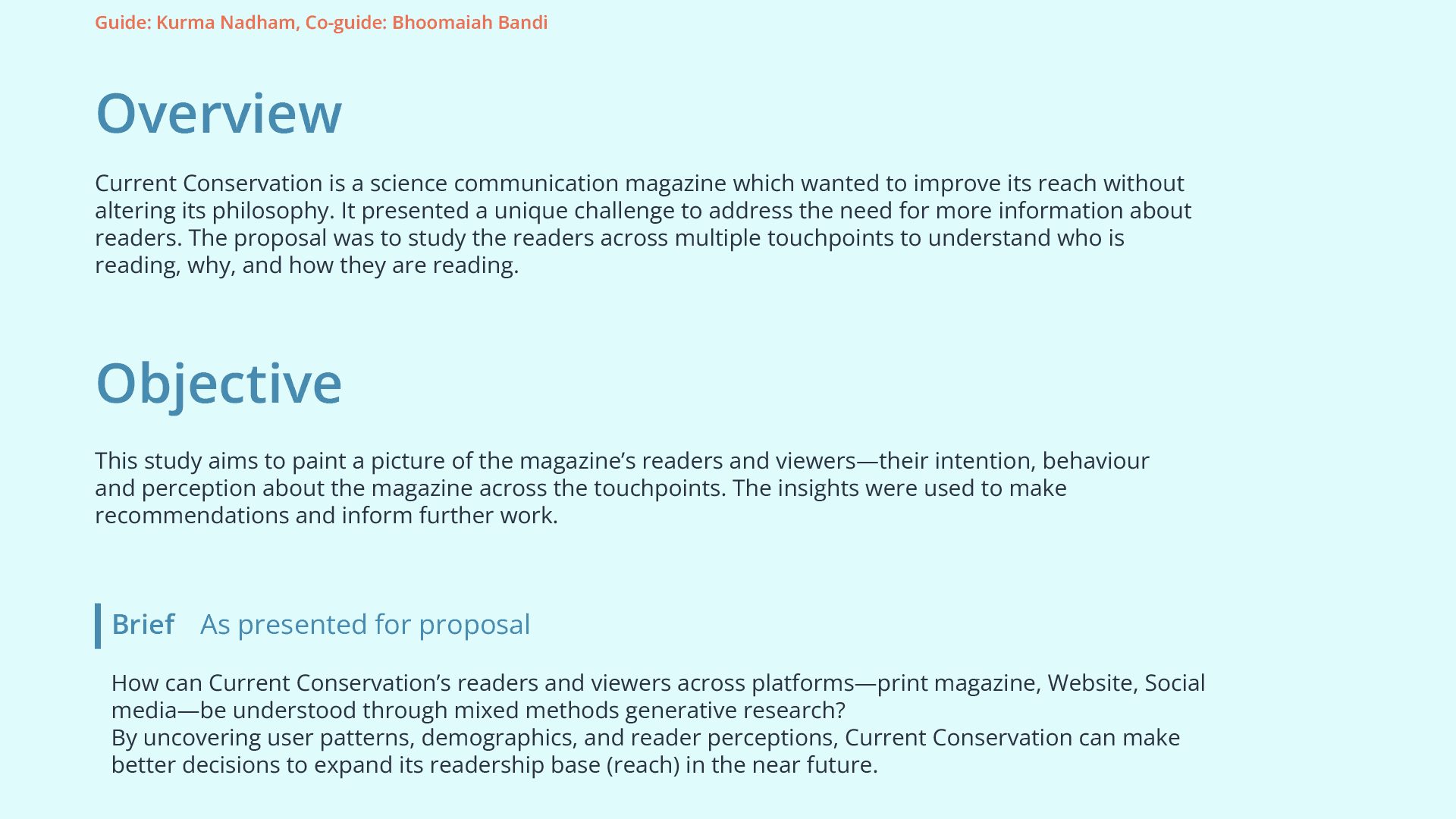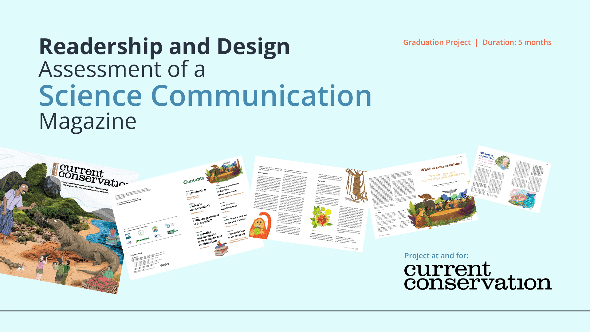 Current Conservation is a science communication magazine that focuses on biodiversity and conservation science through storytelling and visual narrative.