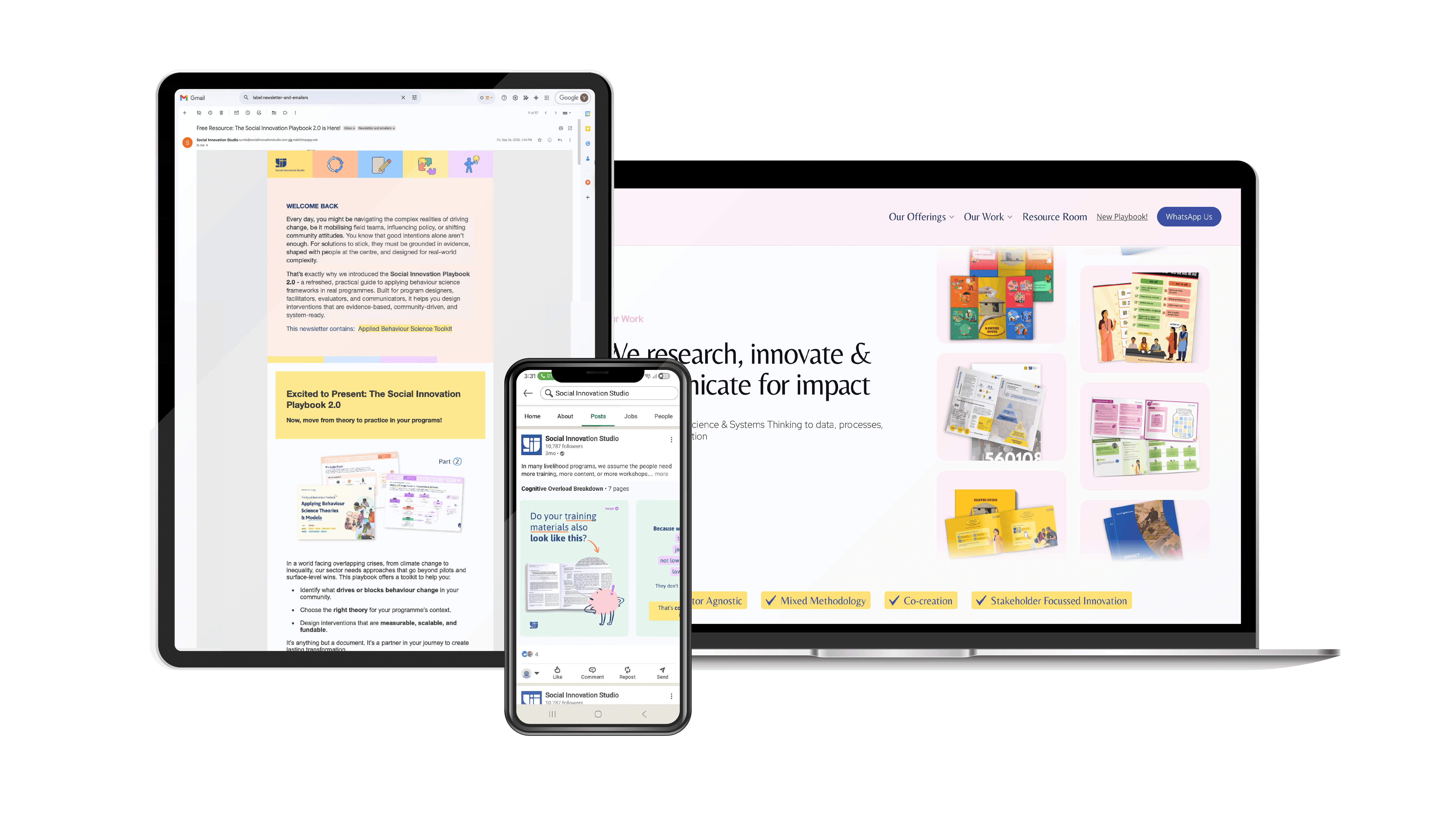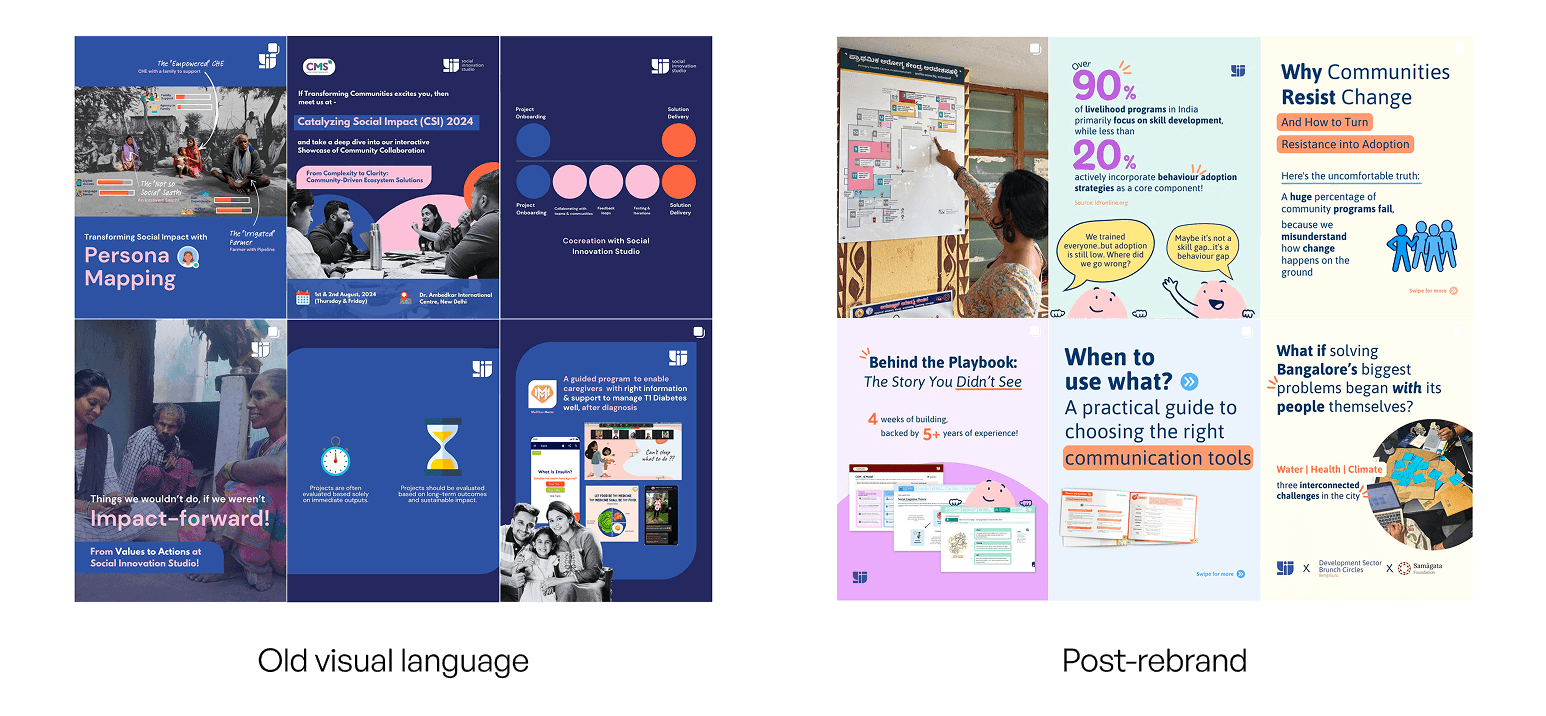 Social Innovation Studio (SIS) sits at the intersection of behavioral science, systems thinking, and grassroots impact. Since 2021, the studio delivering high-impact programs for partners like Maruti Suzuki and Plustrust. As the studio entered it’s growth phase, its visual presence needed to evolve to reflect its expanding capabilities and maturity. The objective was to transition the brand from a quiet consultant firm to a confident, forward-facing industry leader in the development sector.